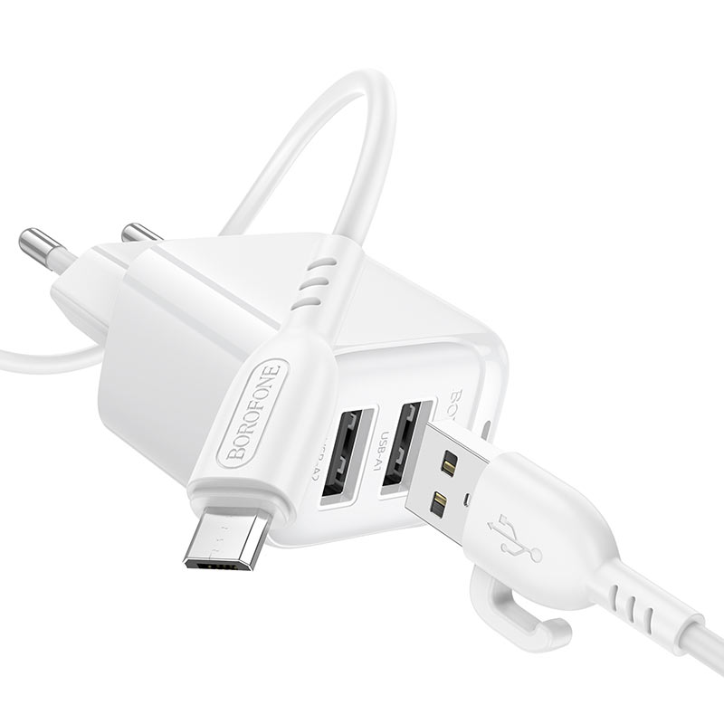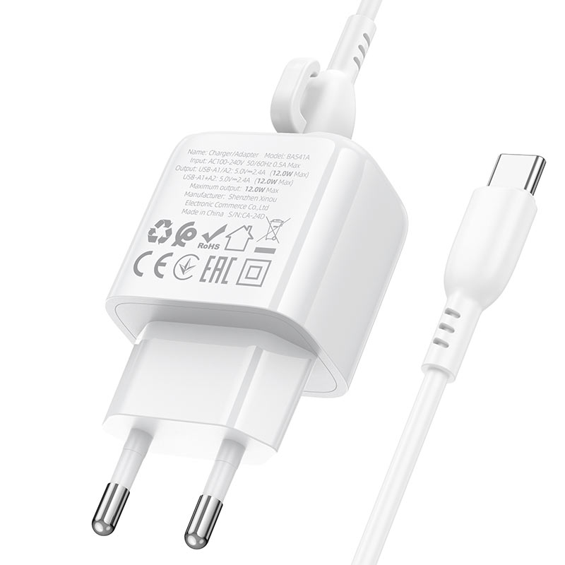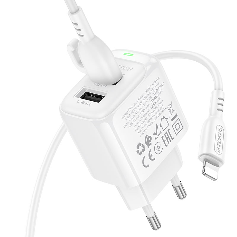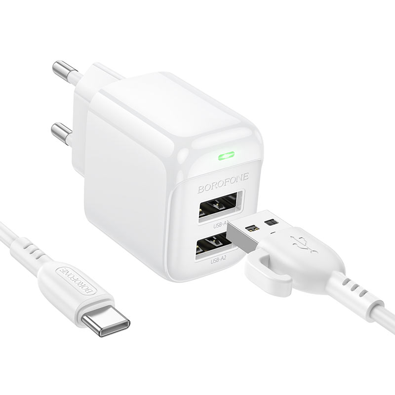 BOROFONE BAS41A Potential, wall charger, dual USB-A 12W output, LED indicator, EU plug, sets with cable