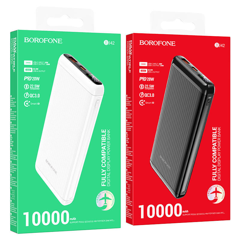 BOROFONE BJ42 Speed, 18W USB-C port input, USB-A 22.5W and USB-C 20W outputs, supports fast charging protocols, LED digital display