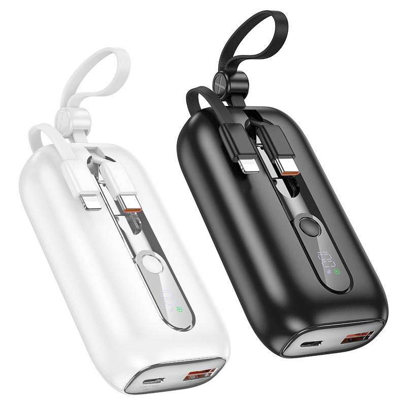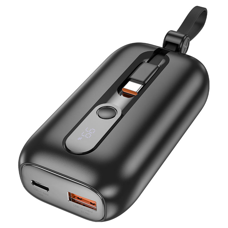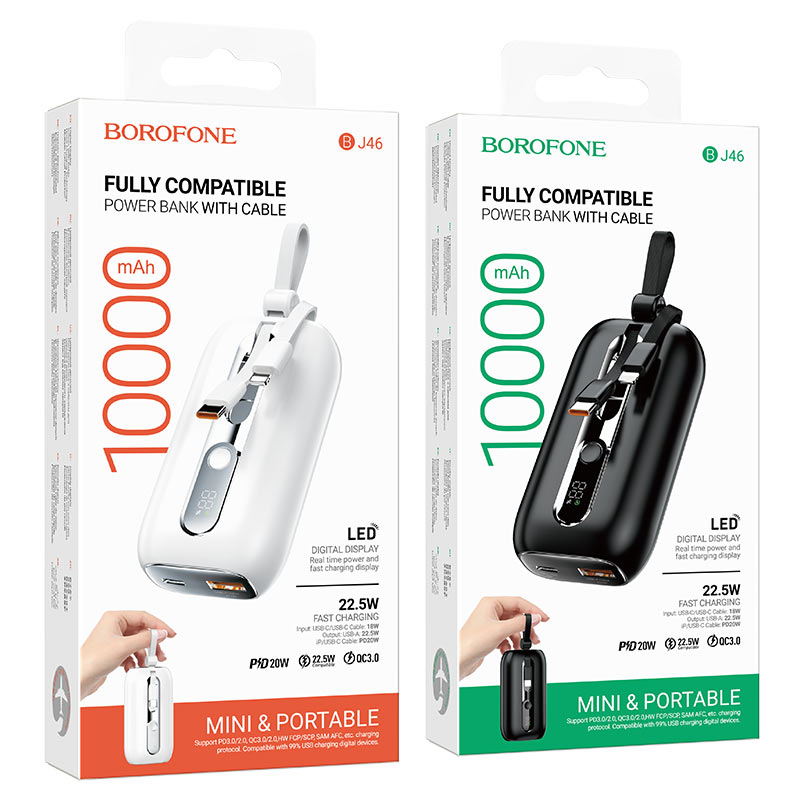 BOROFONE BJ46 Lord, 18W USB-C port and 18W USB-C cable inputs, 22.5W USB-A port, USB-C and iP cables 20W outputs, 2 built-in cables, supports fast charging protocols, LED digital display