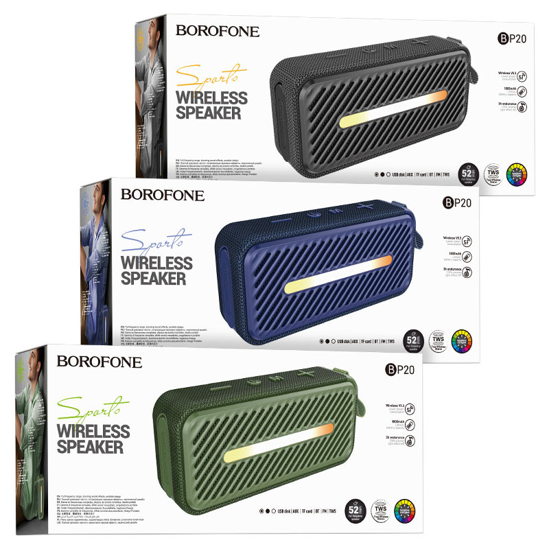 BOROFONE BP20 Joy, портативная колонка, BT v5.3, аккумулятор 1800mAh для 3 часов использования, поддержка TF, USB, AUX, FM, TWS режимов воспроизведения